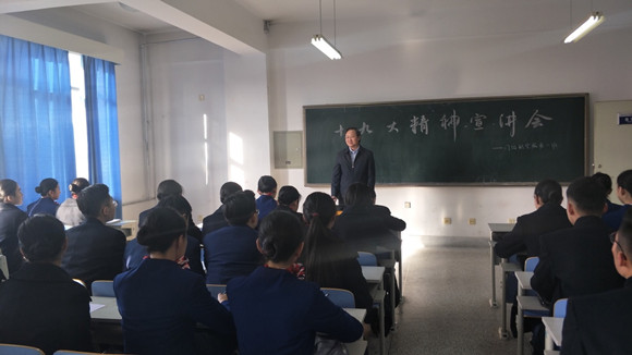 2017年10月26日,学院书记李发舜、院长把多勋在全院大会上分别宣讲十九大精神,深入阐释了十九大的新精神、新思想、新判断,要求全院教师率先学习十九大精神,将十九大精神融入日常教学当中。