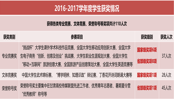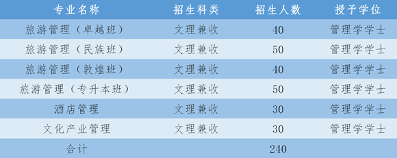 特别说明:该专业主要为中等职业学校学生提供深造机会,为全省培养旅游高等职业教育人才,为敦煌国际旅游名城建设量身定制人才,该专业实行单列招生计划,在敦煌市办学。