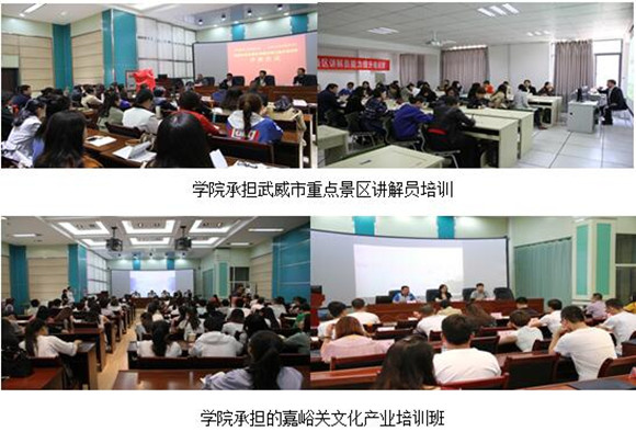 学院以区域经济社会发展为主线,多层次、多角度为地方经济发展服务,主要包括文化与旅游产业的政策咨询、调研、规划与策划、报告、人力资源培训、建议案以及人才培养等等。近年来,先后为区域开展咨询与报告200余次,先后承担区域文化与旅游类规划项目150多项,先后为区域培训人才5万余人次,部分已成为区域行业的骨干与领头人等,这些完全彰显了学院在甘肃的龙头地位以及良好的社会形象与声誉。