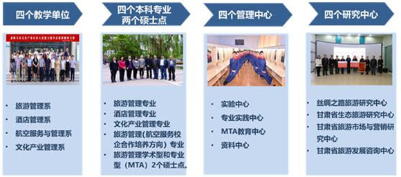 学院本着“学科建设与人才培养立学院,应用研究与服务社会求发展”的办院宗旨,立足于甘肃,服务西北,为甘肃乃至全国文化 旅游产业输送了大量的专业人才。学院以专业设置全、人才培养层次高、社会服务能力强等特色在全国旅游院校和西北旅游业界中享有盛誉。