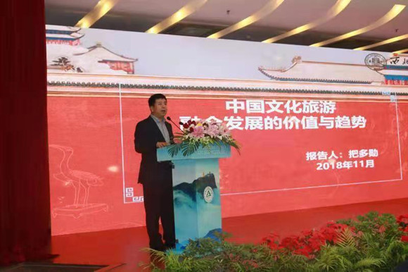 院长把多勋教授作“中国文化旅游融合发展的价值与趋势”大会发言。