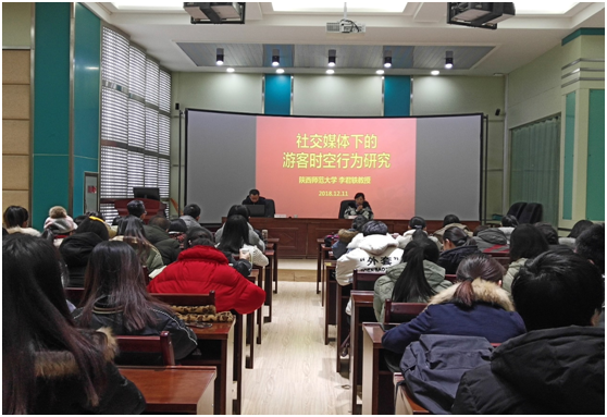 2018年12月11日上午,应学院邀请,陕西师范大学地理科学与英国上市365官网博士生导师李君轶教授在教学10号楼C区7楼报告厅做了主题为“社交媒体下的游客时空行为研究”的学术报告,学院全体研究生、旅游管理和文化产业管理专业部分本科生及教师聆听了学术报告会。报告会由旅游管理系主任欧阳正宇老师主持。