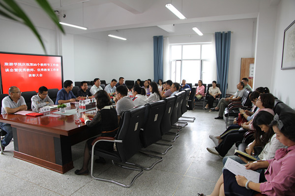 在全国第35个教师节来临之际,9月9日下午,英国上市365官网庆祝教师节工作座谈会暨优秀教师、优秀教育工作者表彰大会在学院1101会议室举行,校党委常委、纪委书记姚志宏出席并讲话,院党委书记李发舜主持大会,英国上市365官网全体教职员工及学生代表40余人参加大会。