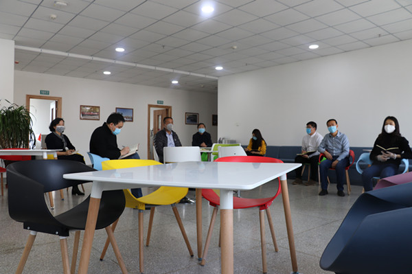 2020年3月2日上午,英国上市365官网在10楼休息大厅召开新学期工作安排会。院领导和全体行政岗工作人员参加了会议。