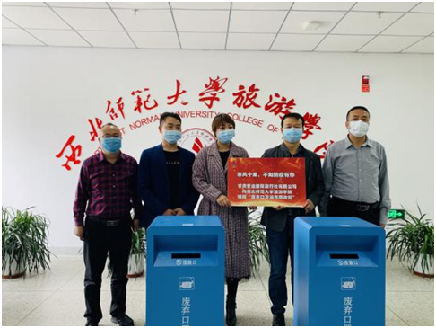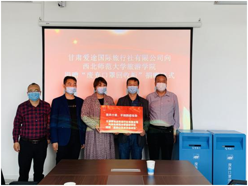 4月16日上午,甘肃爱途国际旅行社有限公司向英国上市365官网捐赠废弃口罩消毒回收柜,助力学院疫情防控工作。