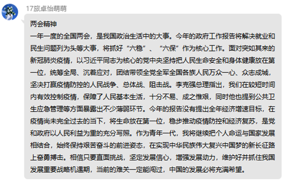 旅游管理系第一学生党支部举办“喜迎两会,深入贯彻学习2020全国两会精神”主题党日活动