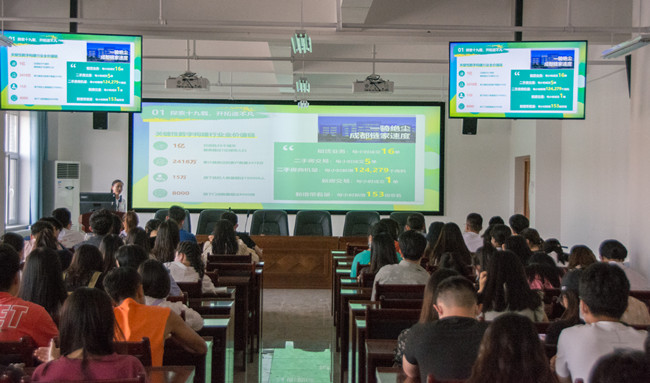 首先,四川链家房地产经纪有限责任公司宣讲嘉宾就公司业务范围,薪资水平,职业发展路径进行了介绍。并详细地叙述了该公司发展模式的优势及新颖的企业理念和广阔的发展空间。同学们对四川链家房地产经纪有限责任公司的各项信息和文化理念也有了一定的了解,有求职意向的毕业生在现场向用人单位投递了简历。