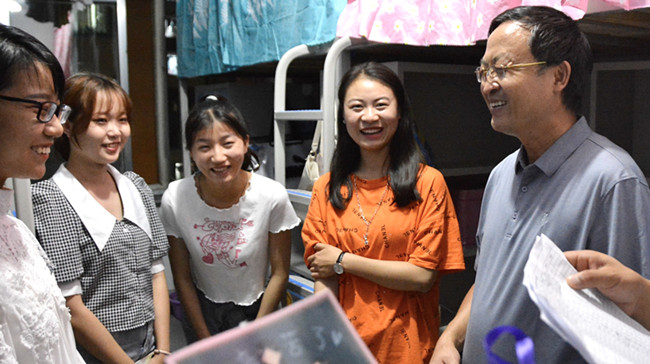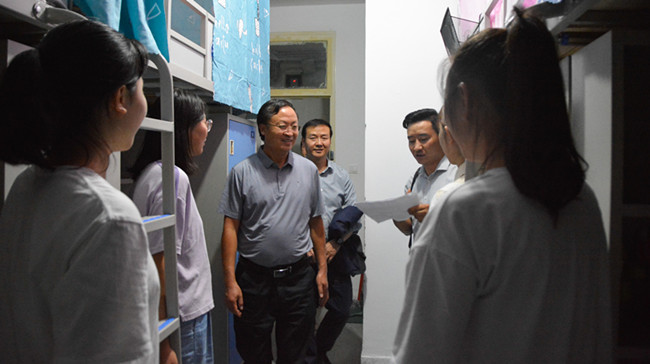 2020年9月10日晚,英国上市365官网进行了2020级新生开学后的第一次走访查宿。党委书记李发舜、院长把多勋、副书记谢致远、副院长王耀斌、王力、万建斌等学院领导、新生各班班主任和辅导员老师深入学生公寓探望2020级新生。