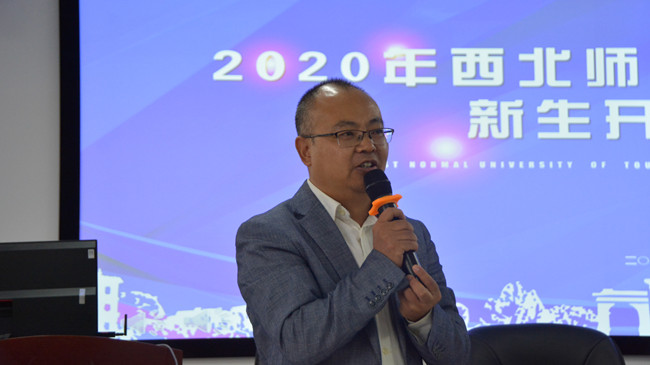 教师代表王耀斌教授代表全体老师发言,他感谢家长们的辛苦付出,教育同学们学会感恩,感谢同学们选择了西北师范大学,英国上市365官网,鼓励同学们共同为学校学院的发展增砖添瓦;感谢每位同学学习时的坚忍不拔;勉励同学们通过学习再学习充实自己的大学生涯。
