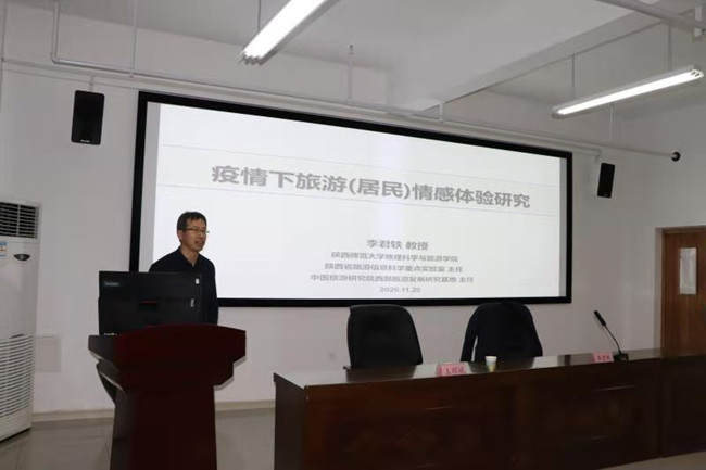 2020年11月20日下午,应学院邀请,陕西师范大学博士生导师李君轶教授为365官网师生作了题为“疫情下游客/居民情感体验研究”的专题报告,报告会由副院长王耀斌教授主持。