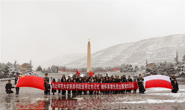 3月19日上午9时,英国上市365官网师生代表来到兰州市烈士陵园,开展“追寻红色记忆,缅怀英雄先烈”主题党日、主题团日活动,深切缅怀“卫国戍边英雄”陈红军烈士和解放兰州牺牲的革命前辈。学院行政教职工党支部、旅游管理系第一学生党支部、研究生党支部、教师代表50余人参加活动。