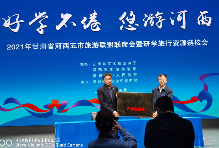 期间,李发舜书记一行还受邀参加了在嘉峪关电视台演播大厅由甘肃省文化和旅游厅、嘉峪关市人民政府、河西五市旅游联盟主办,嘉峪关市文化和旅游局承办的“好学不倦·悠游河西”2021年甘肃省河西五市旅游联盟联席会暨研学旅行资源链接会。