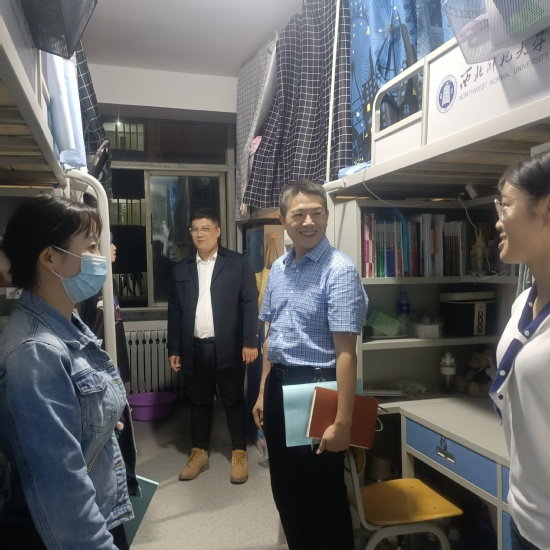 2021年9月6日晚,英国上市365官网18—20级全体学生已陆续安全返校,为进一步做好新学期开学老生安全返校工作,英国上市365官网党委副书记戴小武带领学院专职辅导员与班主任老师深入在校学生宿舍进行走访、谈话,了解当前返校学生的学习、生活和心理状况。