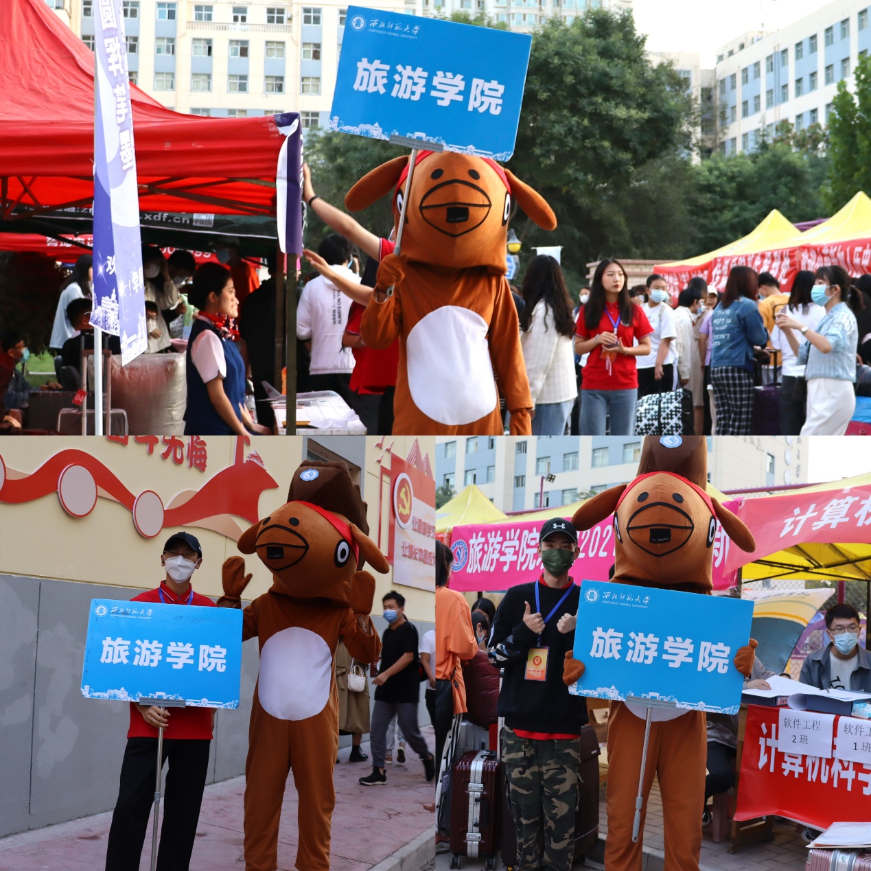 迎新当日,学院特别制作的卡通形象吉祥物也闪亮登场,成为新生们纷纷合影打卡的对象,虽然烈日炎炎,但旅院吉祥物依然会竭尽全力给新生一个专属的“拥抱”,用活泼可爱的形象缓解新生步入新环境的紧张感。