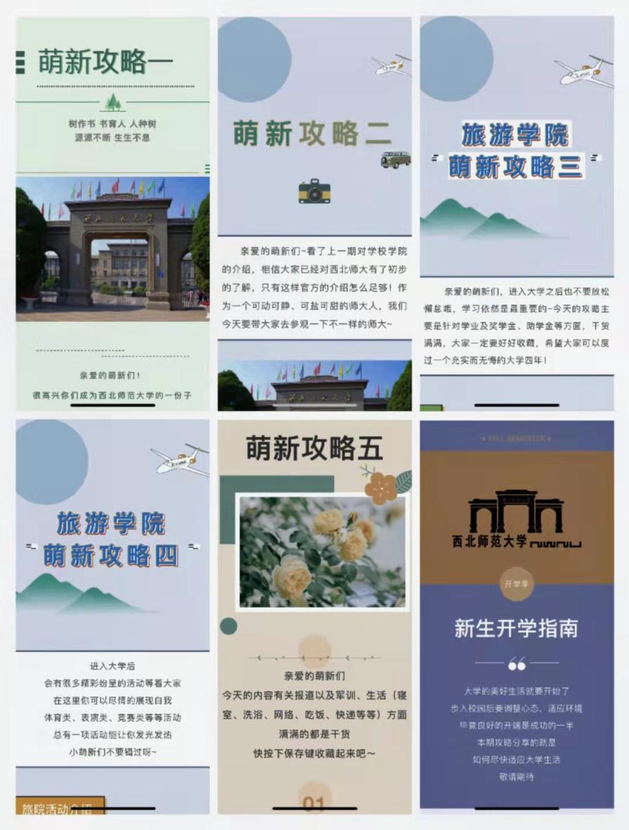 学院精心制作网上新生入学须知系列报到让新生们提前了解师大的校史校情和校纪校规,熟悉学院的学习、生活资源和历史文化。建立学院新生官方班级联系群,并安排辅导员、班主任组成在线答疑队伍,以小班形式解答新生疑问,从学习、心理和生活角度入手,重点围绕学生的目标设定、行为调试和时间管理等方面开展新生适应教育,给予学生系统化、专业化的指导,为学生答疑解惑。
