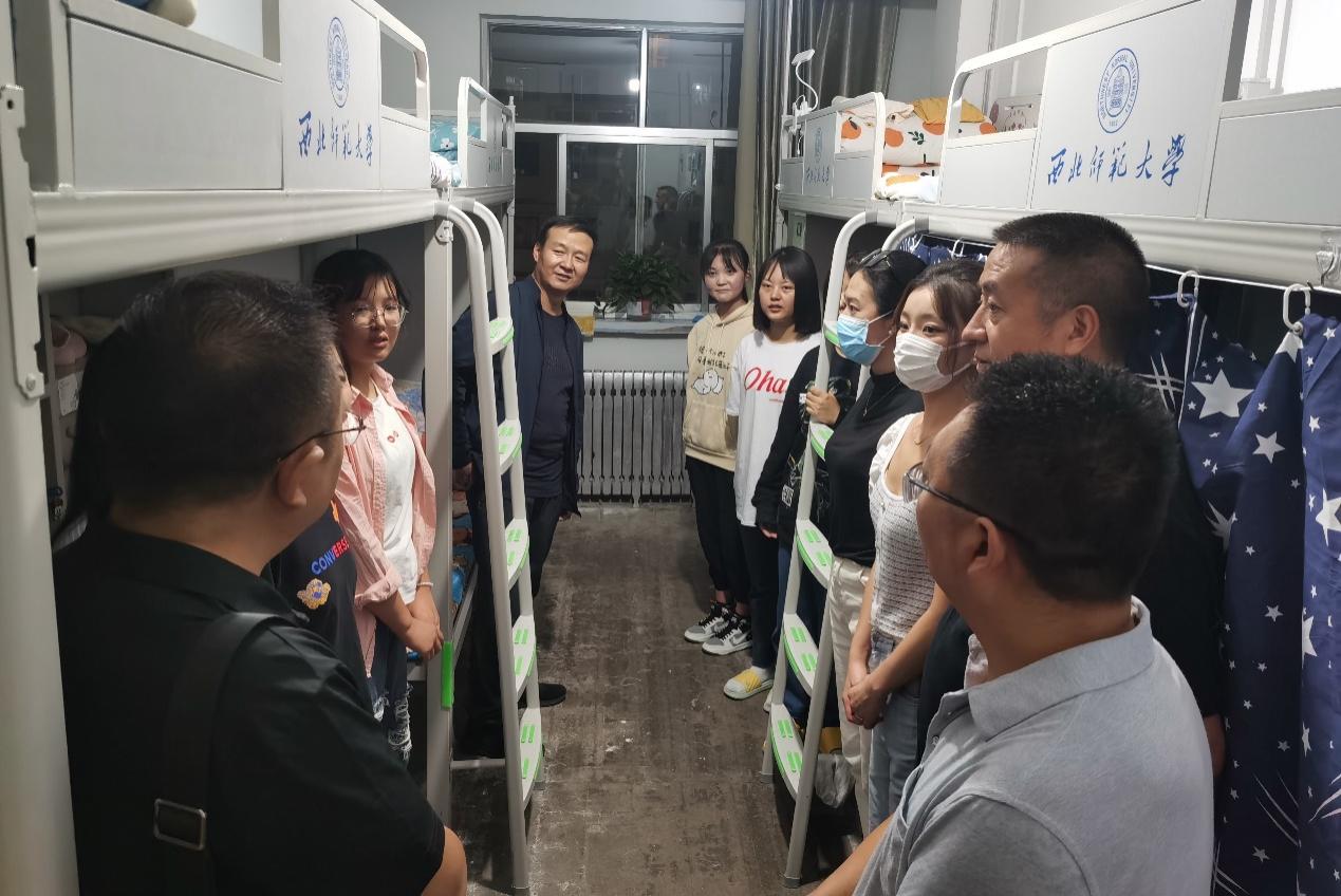 梁旺兵院长与同学们亲切交谈,了解学生的家乡、家庭情况和专业、入校感受等。梁院长向同学们介绍了学院的基本情况,希望同学们能够理解疫情常态化情况下“非必要不外出”的特殊要求,做好自身健康管理工作;希望同学们刻苦学习知识,锻炼强国本领,继承西北师大的优良学风,在新的环境中努力实现自己的梦想,争做担当民族复兴大任的时代新人。