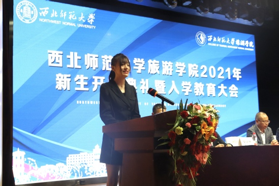 开学典礼在西北师范大学校歌悠扬的旋律中闭幕:“我的校园在黄河岸上,这儿鲜花朵朵,绿树行行……”经过一代又一代师生的努力,英国上市365官网已走过初创期、发展期,正在迈入更加辉煌的未来。希望新一代的旅游青年,继承师大优良传统,积极融入英国上市365官网大家庭,追求上进、追求卓越、锤炼本领,成长为能够担当民族复兴大任的时代新人,在新时代为国家和民族再立新功。