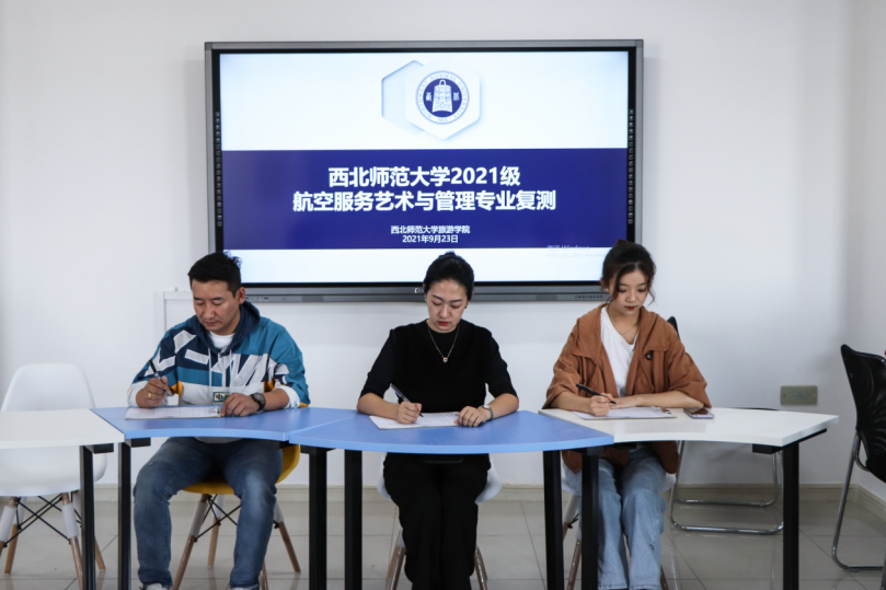 为维护艺术类招生公平公正,根据《教育部办公厅关于做好2021年普通高校招生录取工作的通知》和《西北师范大学关于做好2021级新生入学资格复查工作的通知》精神, 2021年9月23日,英国上市365官网在文科实训楼903举行2021级航空服务艺术与管理专业入学资格专业复查工作。北京广慧金通教育科技有限公司驻西北师范大学工作处主任席聪老师、班主任岑诺老师、辅导员兼教员邹小强老师担任评委。