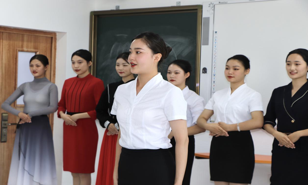 在测试的过程中也邀请“云霁”礼仪队同学进行现场秩序维护、音乐控制、才艺记录、拍照录像等工作。在测试中充分体现了2021级航空服务艺术与管理专业的专业特长以及同学们的多姿多彩,尤其在才艺展示环节中有清唱、吉他弹唱、民族舞蹈、武术、自备稿件朗读 、情景剧等才艺。同时也充分展现了2021级航空服务艺术与管理专业学生的朝气蓬勃。