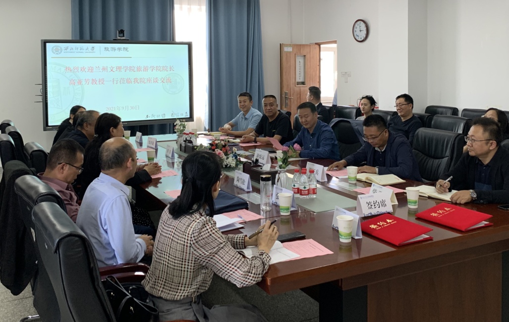 高亚芳院长对兰州文理学院英国上市365官网的概况和发展规划做了简要说明,同时表达了对英国上市365官网的关注,希望能够和学院在专业建设、社会服务、人才培养等领域开展全方位的交流合作,共同为甘肃的文化旅游发展做出更大贡献。双方领导班子成员及各系所中心负责人也彼此进行了深入的交流座谈。