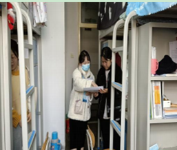 发挥组织优势、织密防控网络。落实网格化管理体系,这是疫情防控工作会议中学院党委的第一个要求。学院领导全员参与,学生党员、积极分子主动请战,构成了动态化、全方位的管理体系。积极推进联防联控,群防群控,让疫情防控无死角。学生党员网格员每天早晨8:00前进行宿舍内务整理,卫生防疫,学习上课等情况检查,同时及时询问学生身体状况、思想状况等,激活青年学子“红色细胞”,筑牢疫情防控网。