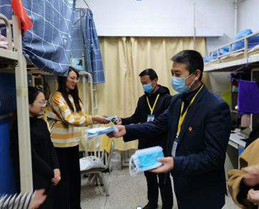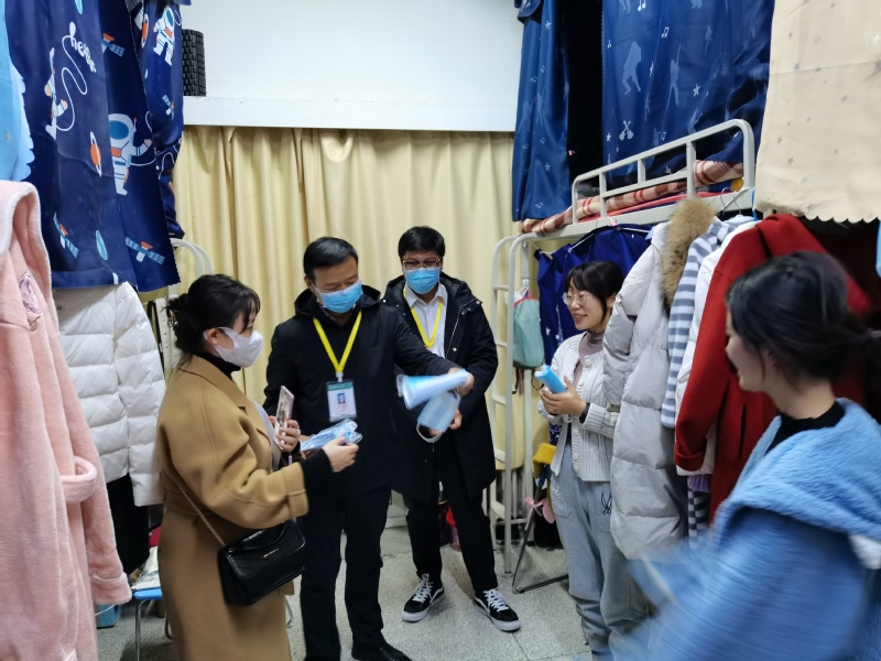 大爱无声处,抗疫人心齐。疫情当前,英国上市365官网众多爱心校友为抗疫一线的工作人员和全院师生无偿捐赠防疫物资,为将这份温暖和力量传递给所有旅院学子。11月19日晚,英国上市365官网党委书记谢致远、党委副书记戴小武,辅导员梅天鹏、鲁梦鸽前往新校区研究生公寓走访寝室为同学们传递来自校友的这份温暖。