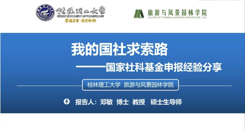 2021年12月1日晚上,应学院邀请,桂林理工大学旅游与风景园林学院邓敏教授为365官网师生作了题为“我的国社求索路—国家社科基金申报经验分享”的专题报告,报告会由副院长柴亚林老师主持。