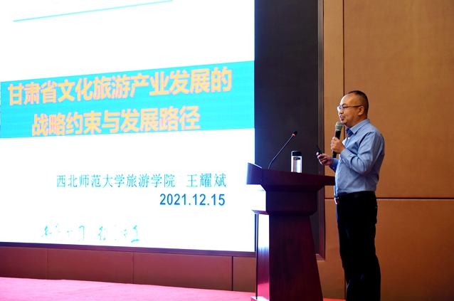 受邀讲师团重要成员之一,西北师范大学研究生院副院长王耀斌教授以“甘肃省文化旅游发展的战略约束和发展路径”为题,从甘肃省文化旅游产业发展的资源特征、约束条件、具体问题、路径选择等四个层次,全面解读了甘肃省文化旅游发展的资源优势,肯定了全省文化旅游快速发展的喜人态势,结合其他省份文化旅游发展的典型经验,从宏观和微观两个层面探讨了甘肃省文化旅游产业发展的路径选择,为推动文旅事业高质量发展寻诊把脉、建言献策。