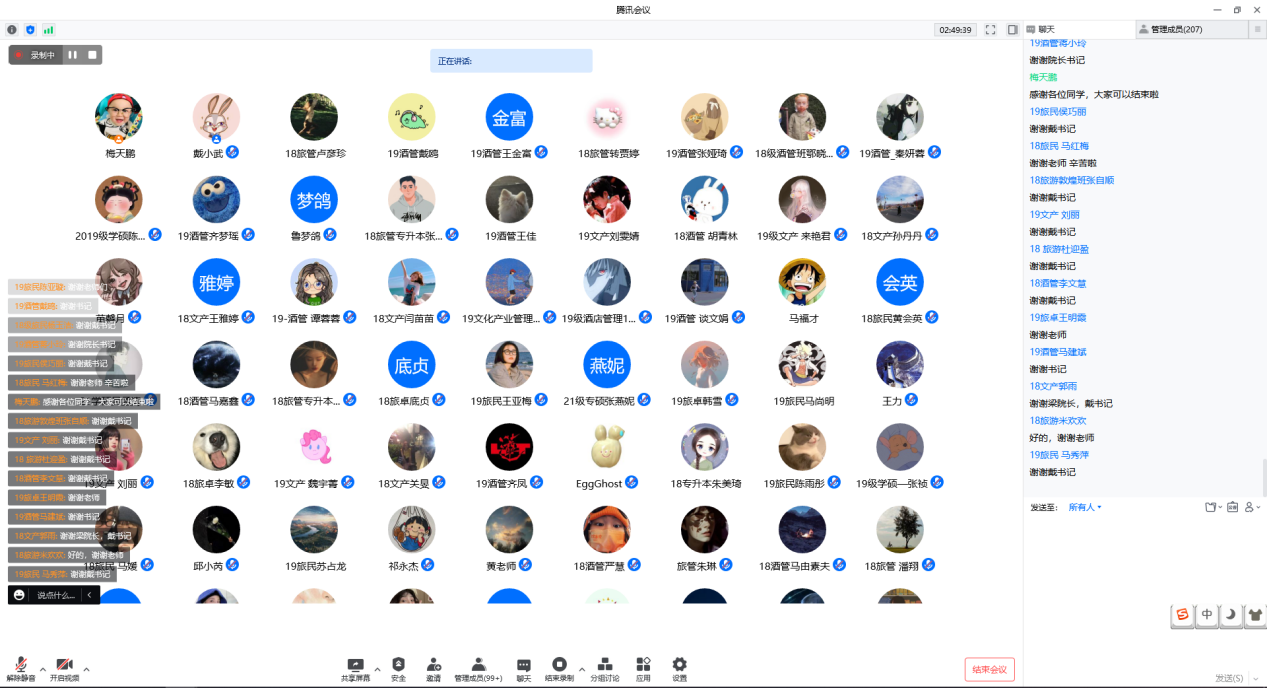 交流研讨环节,同学们热情高涨,语音弹幕目不暇接,2022届旅游管理硕士毕业生张祯、2019级旅游管理卓越班李一鑫分别从网签系统签约违约金事宜和大学生就业如何处理好个人求职与家庭选择之间的矛盾这两个问题展开交流,胡炜老师的耐心解答不仅消除了同学们心中的疑惑,也让更多与会毕业生感受颇多,受益匪浅。零距离的沟通,心与心的交流,既提高了毕业生求职就业的应变能力,又有利于帮助毕业生自信地坚定未来职业生涯发展目标,更有自信地轻松走向职场。