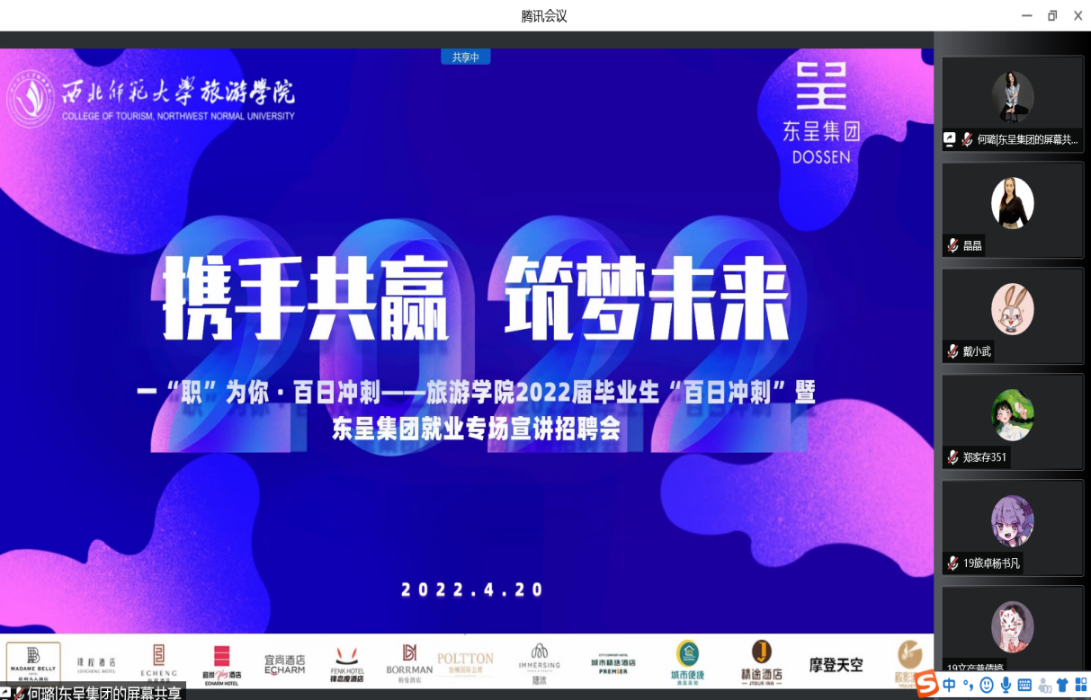 4月20日,英国上市365官网举办2022届毕业生“百日冲刺”暨东呈集团就业专场宣讲招聘会。学院党委书记谢致远、院长梁旺兵,东呈集团政委朱星红及相关负责人,英国上市365官网专职辅导员、毕业班班主任和2022届、2023届部分毕业生以线上线下的方式参加会议。会议由英国上市365官网党委副书记戴小武和东呈集团西北大区人力负责人朱晶晶共同主持。