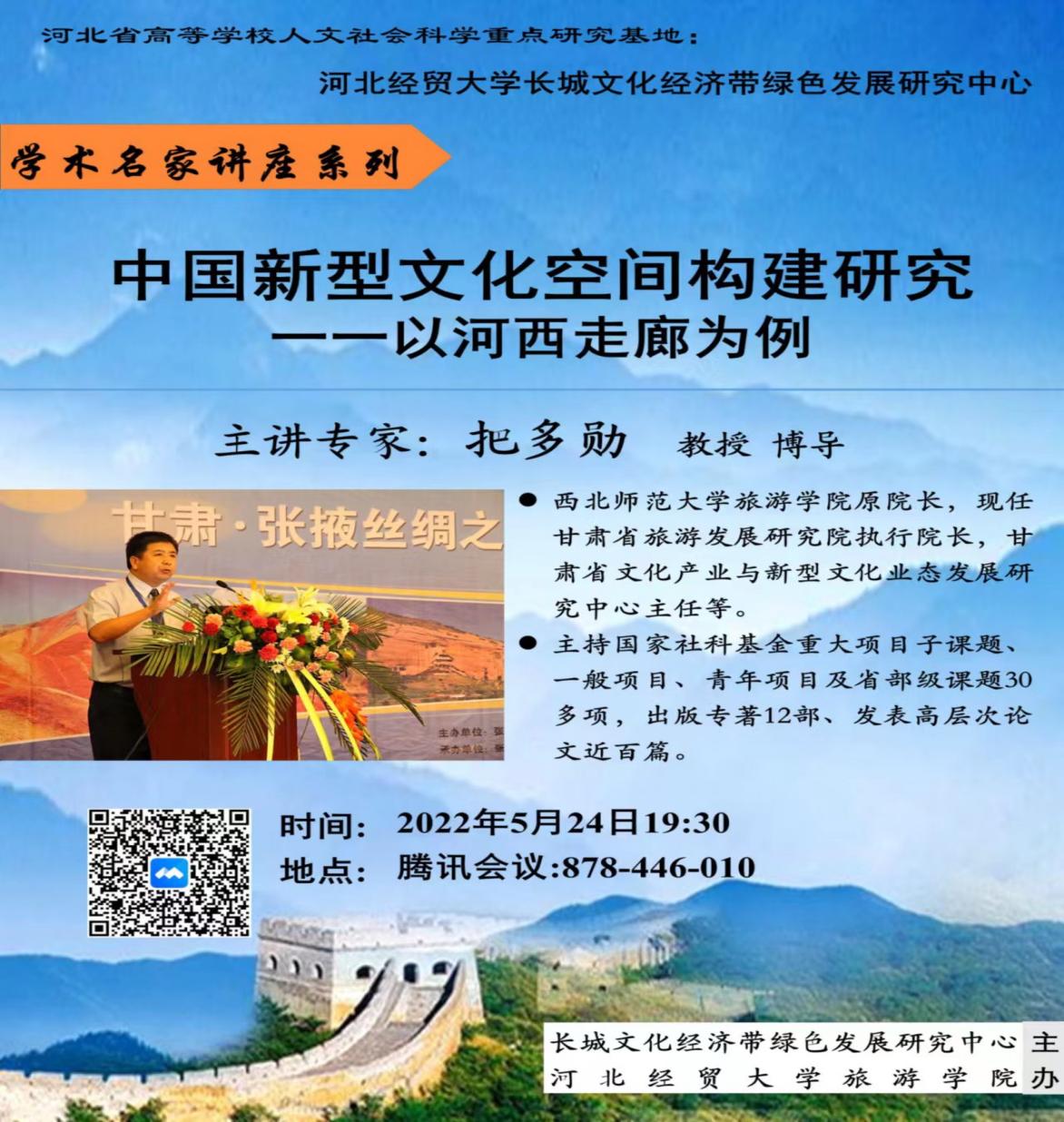 近日,河北经贸大学承担的河北省人文社科重点研究基地“河北省长城文化经济带绿色发展研究中心”正式成立,365官网把多勋教授被聘为中心专家组成员,并为河北经贸大学英国上市365官网做了“中国新型文化空间构建研究”的学术报告。