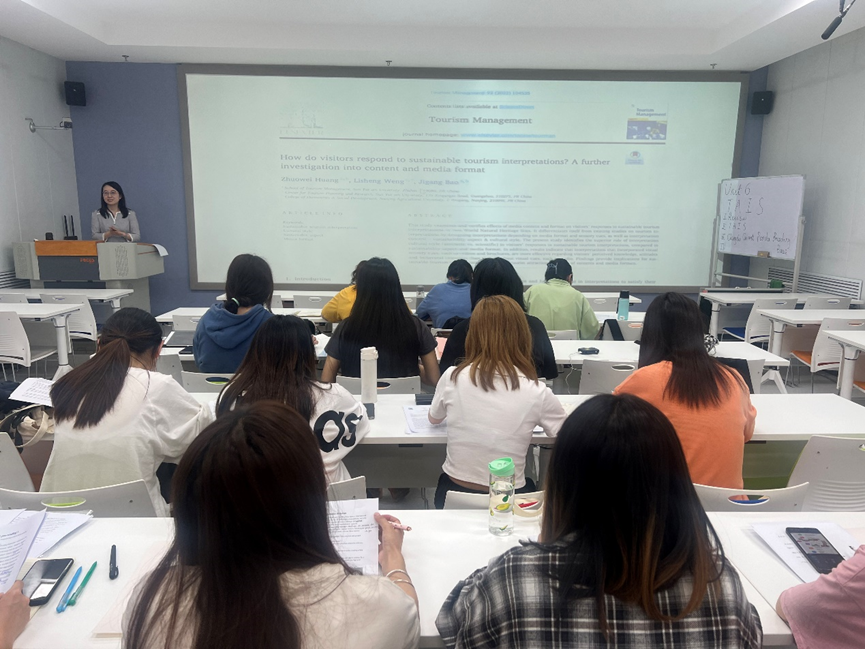 在评议问答环节,各位评委老师对王耀华老师的课程给予了一致好评。王艳林老师基于自己丰富的景区英语解说翻译经验,从授课内容编排、教学技巧运用、师生互动方法等方面给王耀华老师提出了诸多建议。柴亚林副院长建议王耀华老师可以在课程理论方面关注传播学、叙事学与符号学的相关研究议题,进一步通过理论运用提升课程内涵质量。杨阿莉教授建议王耀华老师参阅邹统钎教授编著的相关旅游学科教材,构建更为完备合理的课程内容框架。