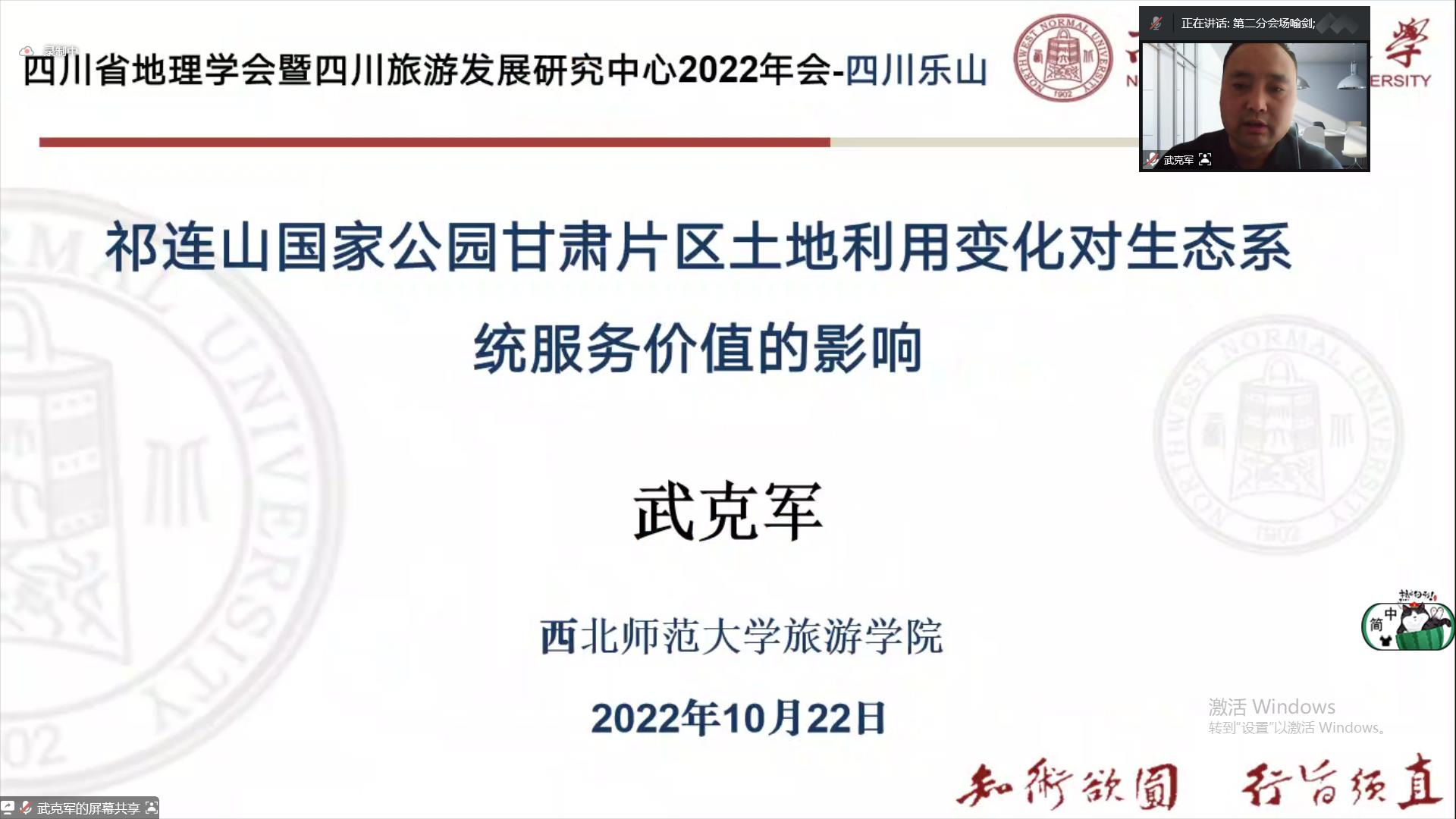 10月22日,365官网副院长武克军博士应邀参加“四川省地理学会暨四川旅游发展研究中心2022年学术年会”并在线做主题发言。此次学术年会在四川省乐山市举办。