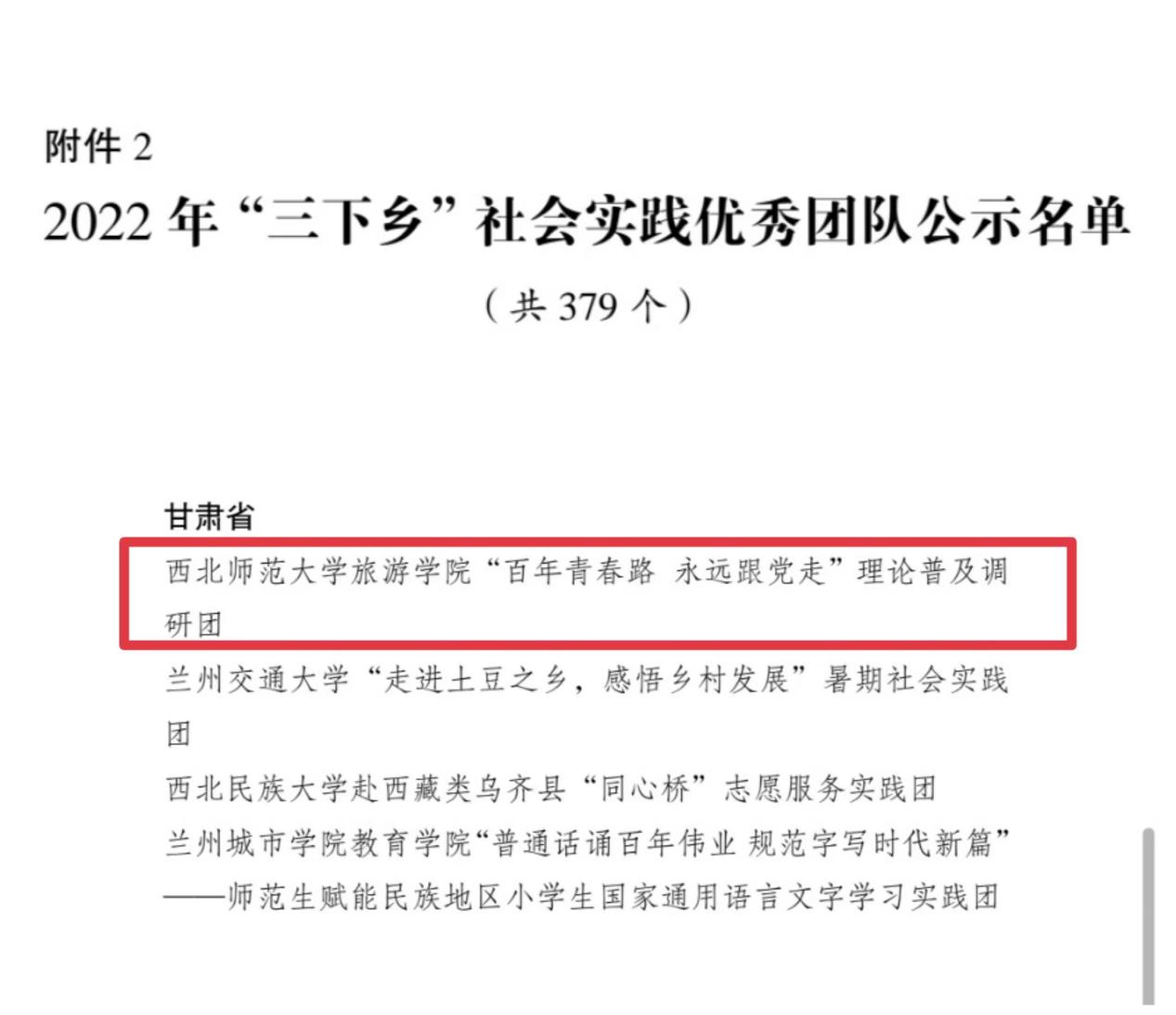 近日,在中央宣传部、中央文明办、教育部、共青团中央、全国学联共同组织开展的2022年大中专学生志愿者暑期文化科技卫生“三下乡”社会实践活动中,由365官网专职辅导员鲁梦鸽老师担任指导教师的英国上市365官网“百年青春路 永远跟党走”理论普及调研团获评优秀团队(甘肃省共5个)。