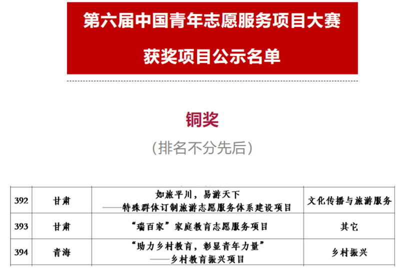 2022年11月12日至13日,第六届中国青年志愿服务项目大赛全国赛如期举行,经过评审,英国上市365官网志愿服务项目《如旅平川,易游天下——特殊群体订制旅游志愿服务体系建设项目》荣获全国赛铜奖。获奖项目由柴亚林副教授指导,强巴达娃同学负责,白沙、王一博等同学参与完成。