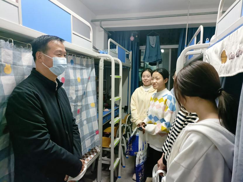 为落实立德树人根本任务,强化“三全”育人实践,体察学生、关爱学生、答疑解惑、解决问题,推动形成育人合力,确保365官网各年级学生尤其是2022级新生返校工作有序、平稳开展推进。2月28日,英国上市365官网党委书记谢致远,党委副书记戴小武,副院长王力、柴亚林、武克军、万建斌,辅导员鲁梦鸽、赵新帮和全体班主任老师深入走访学生宿舍,为学生送去关心和问候。