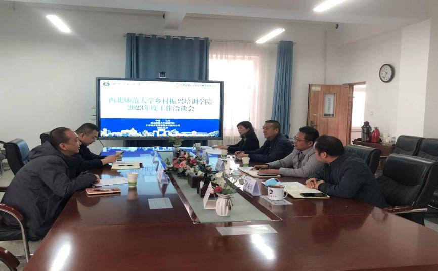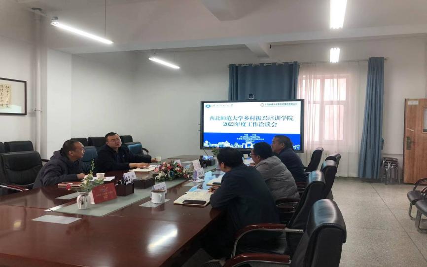 3月7日上午,西北师大英国上市365官网院长梁旺兵、副院长万建斌、武克军、教师欧阳正宇与甘肃省城乡投资集团乡村振兴公司党委书记、董事长、总经理李鸣、党委副书记、副总经理雷立家就西北师范大学乡村振兴培训学院合作及如何开展2023年度培训工作等事宜进行座谈交流。