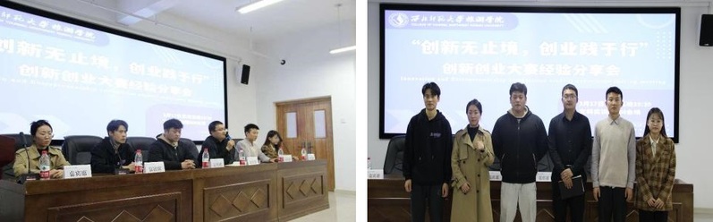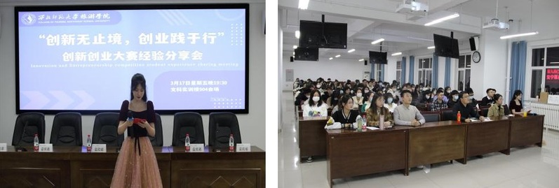 会议开始,4位同学分别从自己的创业经验、项目计划书起拟、项目成员选择、各类赛事中路演PPT制作及答辩、项目进行中所遇到的问题及其解决方法等方面向同学们进行了详细的讲述,并在分享结束后耐心地为同学们排疑解惑,同学们受益匪浅。