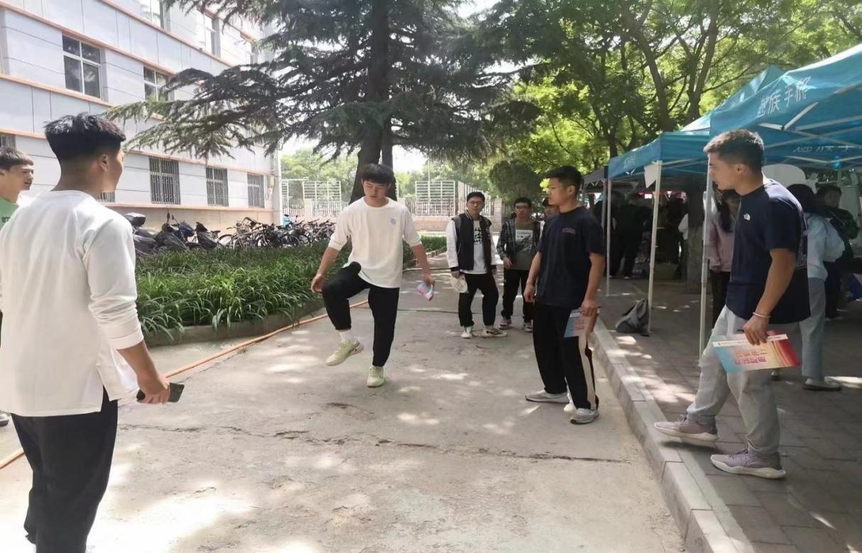“滚蛋吧,烦恼!”主要形式为同学们两人一组或三人一组进行互踢沙包,连续踢6个即算过关,让同学们在动起来缓解压力的同时,增强了群体互动意识和团队协作能力。