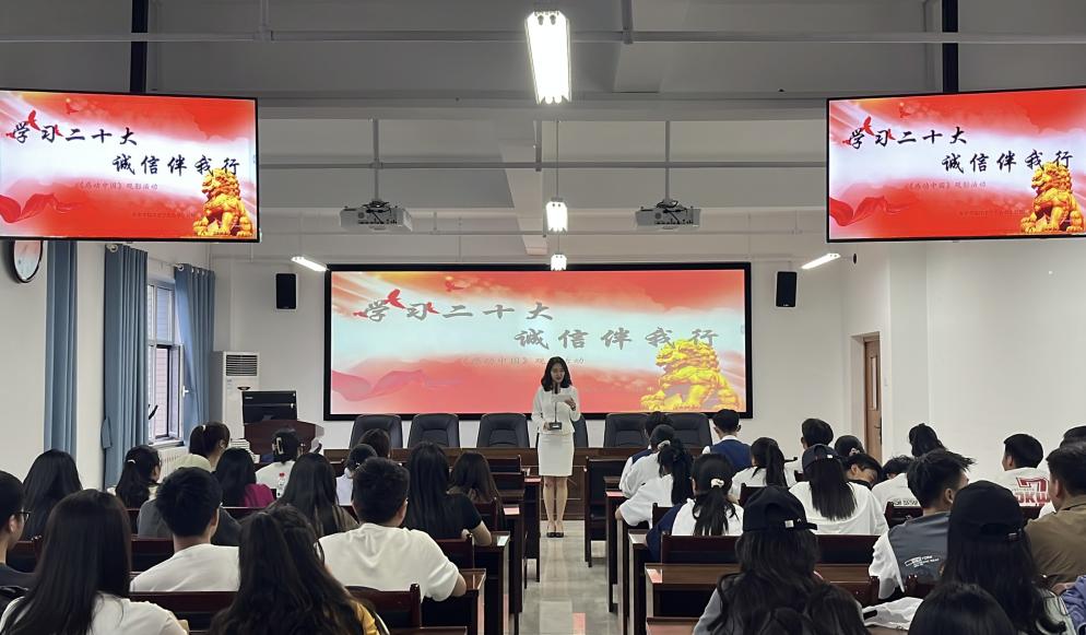 为更好地鼓励青年学子做好时代“答卷人”,强化青年学子诚信意识和责任担当,2023年5月23日,英国上市365官网在云衢楼904开展了“学习二十大·诚信伴我行”诚信教育月主题系列观影活动,组织2022 级本科生观看纪录片《2022年感动中国十大人物》。