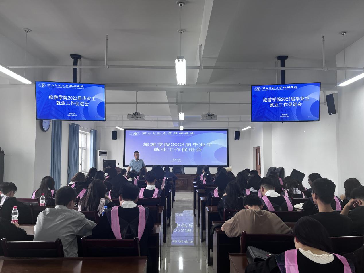 5月30日上午,英国上市365官网召开2023届毕业生就业工作促进会,英国上市365官网院长梁旺兵、党委副书记戴小武、2023届旅游管理民族班班主任窦雅丽、酒店管理班班主任王耀华以及2023届旅游管理民族班、酒店管理班全体同学参加会议。