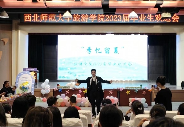 2019级旅游管理3班管悦同学在晚会上做毕业生代表发言。她代表英国上市365官网2023届全体毕业生对悉心教导和精心栽培他们四年的各位老师表示衷心的感谢。通过分享她在西北师大英国上市365官网的四年珍贵记忆回顾个人的成长历程,以及未来将继续在英国上市365官网担任专职辅导员服务师生、服务同学的新起点,勉励同学们做拥有智慧并富有激情的人,做胸怀大智并脚踏实地的人,做富有责任并敢于勇挑重担的人,不畏艰险,追求卓越。