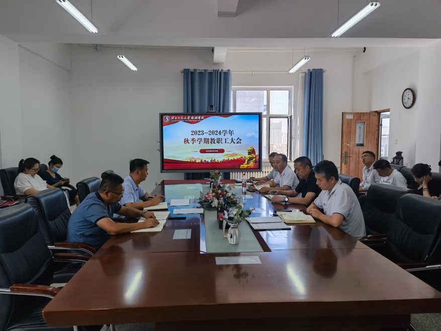 8月29日,英国上市365官网全体教职工在文科实训楼1101会议室召开2023-2024学年秋季学期工作安排会,学院领导和全体教职工参加会议。会议由党委书记谢致远主持。