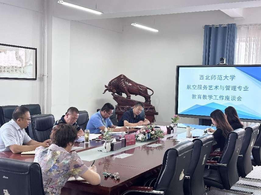 座谈会上,北京广慧金通教育集团驻西北师范大学工作处主任席聪介绍了专业自2012年至今学生的就业及考研情况,对学生管理的制度、举措、经验等进行梳理总结。航空服务艺术与管理专业各班班主任分别对本班学生的学习、实践、生活等情况进行汇报。